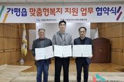 뉴스팍 배상미 기자 | 가평군 가평읍 행정복지센터는 최근 가평읍지역사회보장협의체(지사협), 유일닭강정과 ‘맞춤형복지 지원 업무협약’을 체결했다. 이번 협약으로 유일닭강정은 매월 가평읍 맞춤형복지팀에서 추천한 저소득계층 10가정에 닭강정을 지원해 주기로 했다. 장석조 가평읍장은 “복지사각지대 발굴뿐 아니라 민간 자원 연계가 복지 수준을 높이는 데 큰 역할을 한다”며 “이번 협약이 공공자원만으로는 충족하기 어려웠던 복지수요를 보완하는 데 큰 도움이 될 것”이라고 말했다. 유병훈 유일닭강정 대표는 “우리 지역 주민들과 마음을 나누고 싶어 맞춤형복지 지원 협약에 참여했다”며 “앞으로도 어려운 이웃을 위한 나눔과 봉사를 꾸준히 실천하겠다”고 밝혔다.