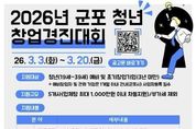 뉴스팍 배상미 기자 | 군포산업진흥원은 지역 내 유망 청년 창업가를 발굴하고 혁신 아이디어의 성공적인 사업화를 지원하기 위해 2026년 군포 청년 창업경진대회 지원사업 참가자를 2026년 3월 3일부터 3월 20일까지 모집한다고 밝혔다. 이번 사업은 창의적인 아이디어와 기술력을 보유한 청년 예비창업자 및 초기 창업기업을 대상으로 우수 창업 아이템을 발굴하고, 단계별 맞춤 지원을 통해 안정적인 시장 진입과 지속 가능한 성장을 돕기 위해 마련됐다. 특히 경진대회를 통해 선발된 우수팀에게는 최대 1천만 원의 사업화 지원금과 전문가 멘토링 등 실질적인 성장 지원 프로그램이 제공될 예정이다. 또한 향후 창업보육센터 입주 신청 시 우대 혜택을 부여해 후속 성장까지 연계 지원할 계획이다. 군포산업진흥원은 이번 사업을 통해 청년 창업 활성화 기반을 더욱 강화하고, 지역 내 창업 생태계 선순환 구조를 구축해 나간다는 방침이다. 아울러 우수 창업기업이 관내에 안정적으로 정착해 지속적으로 성장할 수 있도록 맞춤형 지원을 확대해 나갈 예정이다. 유병직 원장은 “청년 창업은 지역 경제의 미래 성장 동력”이라며, “이번