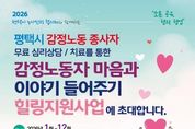 뉴스팍 이소율 기자 | 평택시노사민정협의회는 지난 2월부터 평택고용복지플러스센터 직업상담사를 대상으로 총 4회에 걸쳐 ‘감정노동 종사자 마음과 이야기 들어주기’심리상담 프로그램을 운영했다. 이번 프로그램은 감정노동에 종사하는 근로자들의 심리적 부담을 완화하고 건강한 노동환경을 조성하기 위해 마련됐으며, 감정노동 종사자 30여 명이 참여했다. 상담은 국제대학교 상담센터 소속 전문 심리상담사가 진행했다. 감정노동은 고객 응대 과정에서 자신의 감정을 조절하며 서비스를 제공해야 하는 업무 특성상 지속적인 스트레스와 심리적 부담에 노출되기 쉬운 만큼, 평택시노사민정협의회는 감정노동 종사자들의 심리적 안정을 지원하고자 이번 상담 프로그램을 운영했다. 평택시노사민정협의회는 올해 하반기에도 심리상담 지원을 지속적으로 추진할 계획이다.