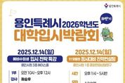 뉴스팍 배상미 기자 | 용인특례시는 12월 1일 오전 10시부터 오후 5시 30분까지 시청 에이스홀과 종합민원상담창구에서 ‘하반기 2026학년도 대학입시박람회’를 연다고 25일 밝혔다. 이번 박람회는 예비수험생들에게 변화하는 입시 환경에 필요한 정보를 제공하고자 마련됐다. 입시전략 특강과 고3 수험생들의 수능성적을 분석해 학생 개인에 최적화된 대입전략을 지원하기 위한 진학컨설팅이 진행된다. 특강은 시청 에이스홀에서 1부와 2부로 나누어 운영되며, 초등학생부터 고등학생까지 예비수험생과 학부모 등 각 450명이 참여할 수 있다. 1부는 오전 10시~12시까지 최승후 강사가 ‘용인특례시 학생을 위한 의학·약학계열 진학과 학생부 전략’을 주제로 강의한다. 2부는 오후 2시~4시까지 윤윤구 강사가 ‘고교학점제 시대에 맞는 대학입시 트렌드’를 주제로 대입환경 변화에 따른 수시·정시대비 전략을 안내한다. 시청 1층 종합민원상담창구에서는 오후 1시부터 5시 30분까지 ‘정시대비 1:1 진학컨설팅’이 진행된다. 총 120명의 고3 학생과 학부모가 참여할 수 있으며, 수능성적표와 학교생활기