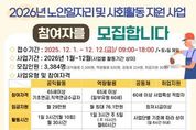 뉴스팍 배상미 기자 | 광명시가 어르신의 건강한 노후와 사회참여 확대를 위해 노인 일자리 참여 기회를 넓힌다. 시는 오는 12월 1일부터 12일까지 ‘2026년 노인일자리 및 사회활동 지원사업’ 참여자 3천384명을 모집한다. 내년도 사업 예산은 전년보다 1억 7천400만 원이 늘어난 162억 원이 편성됐다. 이번 사업은 ▲노인 공익 활동 ▲노인 역량 활용 ▲공동체 사업단 ▲취업 지원형 등 네 가지 유형으로 운영한다. 노인공익활동은 65세 이상 기초·직역연금 대상 어르신이 지역 환경정비, 공공시설 지원 등 공익 활동에 참여하는 사업이다. 노인역량활용은 돌봄·안전 등 도움이 필요한 가정이나 시설에 서비스를 제공하는 역할을 맡으며, 공동체 사업단은 60세 이상 어르신이 소규모 매장 운영 또는 전문사업단 활동으로 경제활동을 이어갈 수 있도록 지원한다. 취업지원형은 구인 기업과 어르신을 직접 연계해 민간 분야에서 일자리를 찾을 수 있도록 돕는다. 참여를 원하는 어르신은 주소지 동 행정복지센터 또는 7개 수행기관(광명시니어클럽, 대한노인회 광명시지회, 소하노인종합복지관