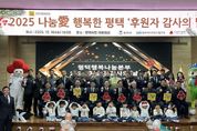 뉴스팍 이소율 기자 | 평택행복나눔본부는 평택시민들을 위해 꾸준히 후원해온 개인 및 기업(단체) 후원자에게 감사를 표하기 위해 지난 10일 ‘나눔愛 행복한 평택 후원자 감사의 날’을 개최했다. 이번 행사는 앙상블 US의 축하공연을 시작으로 2025년 한 해 동안 시민들과 함께한 다양한 모금·나눔 활동을 되돌아보는 영상 상영과 지속적으로 후원하신 개인·단체·기업의 공적을 기리기 위해 평택시장 표창, 나눔실천 감사패, ESG 나눔기업패를 전달하며, 수상자 28명을 비롯한 내빈 60여 명이 참석한 가운데 진행됐다. 끝으로 시립고덕하늘채시그니처어린이집(원장 손난희) 원아들이 축하공연을 선보였으며, 원아들이 만든 종이공예를 행사에 참석한 후원자들에게 직접 전달하며 행사가 따뜻하게 마무리됐다. 이성호 평택시 부시장은 “올 한 해 지역 곳곳에서 따뜻한 나눔을 실천하신 모든 후원자에게 진심으로 감사드린다”며 "2026년 새해에는 이웃사랑을 실천하는 후원자분들의 헌신과 사명에 부응해 평택시 곳곳에 소외된 분들이 생기지 않도록 노력하겠다”고 전했다. 경기 사랑의열매 홍승표 부회장은 “어려운 시기에 자발적이고 적극적