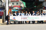 뉴스팍 배상미 기자 | 경기신용보증재단(이사장 시석중, 이하 경기신보)은 민족 최대의 명절인 추석을 앞두고 전통시장을 방문해 상인들을 격려하고 애로사항을 청취하는 등 현장 소통을 통한 민생경제 활성화에 나섰다. 경기신보는 지난 1일(수) 수원특례시 북수원시장에서 ‘추석맞이 전통시장 장보기 행사(이하 장보기 행사)’를 개최했다고 밝혔다. 이날 행사에는 시석중 이사장과 남경순 경기도의회 경제노동위원회 의원(국민의힘, 수원1)을 비롯해 심우현 북수원시장 상인회 회장, 이현상 경기도 중소기업 CEO연합회 수원지회장, 송철재 수원시 권선구 소상공인연합회 회장 등 기업인 단체 관계자와 관내 금융기관 관계자들이 참석하여 전통시장 활성화를 위해 뜻을 모았다. 행사는 시장 상인회 사무실에서 열린 간담회로 시작됐으며, 상인들은 매출 부진 등 현장의 어려움을 전했다. 이에 시석중 이사장과 남경순 의원은 상인들의 목소리에 깊이 공감하며, 이를 해소하기 위한 경기도 소상공인 지원제도와 경기신보의 보증상품을 소개했다. 이후, 시석중 이사장과 남경순 의원을 비롯한 참석자들은 제수용품과 선물 등을 직접 구입하고, 상인들과 대화를 나누며 격려하는 시간을 가졌다. 남경순 의원은 “오늘 행사