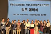 뉴스팍 이소율 기자 | 오산문화재단과 오산시국공립어린이집연합회는 지난 9월 18일 오산문화예술회관에서 지역 문화예술 활성화와 어린이 창의력 증진을 위한 업무협약을 체결했다. 이번 협약을 통해 양 기관은 ▲문화예술 프로그램 공동 개발 ▲어린이 대상 공연 및 체험 행사 확대 ▲지역 문화자원 연계 활동 등을 함께 추진할 예정이다. 협약식에 앞서 열린 차담회에서는 영·유아 대상 문화예술 프로그램의 방향성과 실현 가능성, 교직원 대상 혜택 제공 등 실질적인 협력 방안에 대해 심도 있는 논의가 이루어졌다. 신선교 오산문화재단 대표이사는 “이번 협약은 단순한 문서 체결을 넘어 실질적인 협력의 출발점”이라며 “아이들이 문화예술을 통해 감수성과 창의력을 키울 수 있도록 다양한 프로그램을 마련하겠다”고 말했다. 박은희 어린이집연합회 회장은 “보육 현장에 문화예술이 접목되어 아이들의 성장을 돕는 계기가 될 것”이라고 기대를 전했다. 현재 오산문화재단은 공연, 전시, 교육 등 다양한 프로그램으로 시민들의 문화 향유 기회를 확대하고 있으며, 오산시국공립어린이집연합회는 관내 국공립 어린이집의 협력과 발전을 이끄는 대표 단