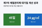 뉴스팍 배상미 기자 | 경기도가 지난해 12월부터 올해 3월까지 ‘제7차 미세먼지 계절관리제’를 시행한 결과, 최근 3년간 초미세먼지 평균 농도가 24㎍/㎥ 유지되는 등 안정적인 대기질을 유지하고 있다고 9일 밝혔다. 2019년 12월~2020년 3월 처음 시작한 미세먼지 계절관리제는 고농도 미세먼지가 집중 발생하는 겨울부터 이른 봄철에 배출가스 5등급 차량 운행 제한, 공공부문 차량 2부제, 사업장 및 공사장 관리 강화 등 다양한 미세먼지 저감 대책을 추진하는 것이다. 경기도 보건환경연구원 분석에 따르면 지난해 12월부터 올해 3월 도내 초미세먼지 평균 농도는 24㎍/㎥를 기록했다. 2022년 12월~2023년 3월 28㎍/㎥에서 다음 연도에 24㎍/㎥로 하락했고 올해도 동일한 수준을 유지하고 있다. 특히 호흡기 건강에 직결되는 초미세먼지 ‘좋음’(15㎍/㎥ 이하) 등급 일수는 제도 시행 전인 2018년 12월~2020년 3월 동안 단 11일에 불과했으나 지난해 12월~올해 3월에는 45일로 4배 이상 증가했다. 월별 농도 추이를 살펴보면 지난해 12월 20㎍/㎥를 시작으로 올해 1월에는 전년