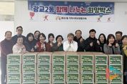 뉴스팍 배상미 기자 | 광교2동 지역사회보장협의체는 지난 12월 1일부터 15일까지 2주간 관내 독거노인을 위한 생활용품 등 선물 150박스를 완성한 후, 18일 박남숙 광교2동장과 이종금 지역사회보장협의체 위원장 및 위원들은 '함께 나누는 희망박스'전달식을 가졌다. 12월 따뜻한 이웃돕기로 광교2동 지역사회보장협의체가 주관하여 지역사회보장협의체 위원들이 소속된 기관에서 각각 햇반, 라면, 간식, 쌀 등 생필품을 모집했다. 광교2동 행정복지센터 내에도 '함께 나누는 희망박스' 트리를 설치하여 광교2동 주민자치회, 통장협의회 등 각 단체장 및 단체원, 어린이집 학부모 등 지역주민 모두가 동참한 연말 이웃돕기 '함께 나누는 희망박스'150개를 완성했다. 이종금 광교2동 지역사회보장협의체 위원장은 “연말 '희망박스'와 함께하는 이웃돕기에 동참해주셔서 감사드리고, 한집 한집 방문하여 소중한 마음이 전달될 수 있도록 노력하겠다”고 말했다. 또한, 박남숙 광교2동장은 “광교2동의 어려운 이웃을 위하여 좋은 취지로 함께한 '희망박스'로 따뜻한 마음을 나눠주신 것에 대해 진심으로 감사드린다”고 말했다. 광교2