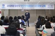 뉴스팍 배상미 기자 | 수원시 장안구는 지난 10월 31일 장안구청 대회의실에서 ‘2025 인구주택총조사 사전준비 교육’을 실시했다. 2025년 인구주택총조사의 원활한 추진을 위해 채용된 118명의 조사원을 대상으로 진행된 이번 교육은 조사 수행에 필요한 실무역량을 강화화고 책임감과 현장 대응능력을 높이기 위하여 마련됐다. 교육에 앞서 이일희 장안구청장은 “인구주택총조사는 인구·가구·주택 관련 종합정보를 파악하여 주요 정책의 기본자료로 활용되고, 국가와 지역의 정책 방향을 결정하는 가장 기본적이면서 중요한 통계조사”라며 “이번 조사에 참여하게 된 조사원들이 가구 방문 시 안전에 유의하며, 꼼꼼하고 성실하게 조사에 임해주길 바란다”고 격려했다. 11월 18일까지 진행되는 2025 인구주택총조사는 인터넷 조사 또는 전화 조사를 통해 참여할 수 있으며, 인터넷·전화 조사 미응답 가구를 대상으로 11월부터는 조사원이 방문 면접조사를 진행할 예정이다.