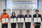 뉴스팍 배상미 기자 | 수원특례시, 수원도시재단, 수원영통경찰서, 수원소방서, ㈜드론스쿨인터네셔널은 24일 더함파크에서 ‘드론 실증도시 구축 사업’ 추진을 위한 업무협약을 체결하고, 협력을 약속했다. 협약에 따라 각 기관은 ▲드론 실증도시 구축을 위한 협력체계 마련 ▲드론 배송 서비스 운영·기술 실증 ▲드론 비행 안전관리·시민 안전 확보 ▲사고 대응 모의훈련, 비상 대응체계 구축 ▲사업 홍보·성과 확산 등에 협력한다. 수원시는 사업을 총괄하고, 행정 지원을 한다. 수원도시재단은 인프라 구축과 운영 지원을 담당하고, 수원영통경찰서와 수원소방서는 드론 비행 안전관리와 사고 대응에 협력한다. ㈜드론스쿨인터네셔널은 드론 배송 운영과 플랫폼 구축 등 사업화를 추진한다. 수원시가 국토교통부 주관 ‘2026년드론실증도시 구축사업’ 공모에 선정돼 진행하는 ‘하늘 편의점과 함께하는 광교산책길 드론배송 서비스’ 실증사업과 연계해 추진한다. 광교호수공원과 광교저수지 일원에 드론 이착륙장 등 거점 2곳과 배달점 8곳을 설치하고, 시민이 모바일로 주문한 식음료와 비상 물품을 드론으로 배송할 계획이다. 이날 협약식에는 오