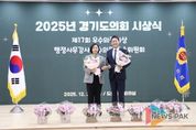 뉴스팍 배상미 기자 | 경기도의회 안전행정위원회 국중범 의원(더불어민주당, 성남4)이 26일 경기도의회 대회의실에서 열린 '2025년 경기도의회 시상식'에서 제17회 우수의정대상을 수상했다. 우수의정대상은 대한민국시도의회의장협의회가 남다른 열정과 헌신적인 의정활동을 통해 지역주민의 복리 증진과 지방자치 발전에 기여한 의원에게 수여하는 상으로, 올해는 경기도의회 의원 44명이 선정됐다. 국중범 의원은 재난·안전 분야를 중심으로 한 성실한 의정활동과 현장 중심의 정책 점검을 통해 도민의 안전과 권익 증진에 기여한 공로를 인정받아 이번 수상의 영예를 안았다. 국 의원은 “이번 수상은 개인의 성과라기보다, 지역 주민과 함께 호흡하며 현장에서 답을 찾기 위해 노력한 결과”라며, “앞으로도 도민의 삶에 실질적인 도움이 되는 의정활동으로 지방자치 발전에 기여하겠다”고 밝혔다. 한편, 이날 시상식은 제17회 우수의정대상 시상과 함께 2025년 행정사무감사 우수의원·우수위원회 시상 등이 함께 진행됐다.