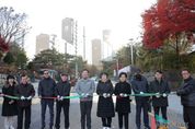뉴스팍 배상미 기자 | 용인특례시가 기흥구 마북동 631번지 일원(교동초등학교·교동마을 현대홈타운 진출입로 부근) 도로 환경을 개선하고 19일 준공식을 가졌다. 교동마을 현대홈타운과 교동초에서 마북로 방향으로 이어지는 우회전 차로 구간이 짧아 아파트 주민들 출근과 학생 등교 시간대에 차량이 몰려 정체가 심했던 곳의 문제를 해결한 것이다. 이 시장은 올해 5월 집단민원이 접수되자 6월 10일 교동마을 현대홈타운을 찾아 정문 진출입로 사정을 살폈다. 이 시장은 현장을 확인하고 진출입로를 확장할 필요가 있다고 판단해 진출입로의 우회전 차로를 확장하는 방안을 검토하라고 관계 부서에 지시했다. 이에 따라 시는 7월 17일 주민설명회를 개최해 설계 내용을 설명하고, 주민 의견을 청취했으며, 9월 9일 실시설계를 마친 뒤 9월 22일 확장 공사를 시작했다. 시는 1억 8100만 원을 들여 한 달여 만인 지난 10월 30일 우회전 전용차로 확장(연장 35m, 폭 6m)과 보도 이설을 마치고, 도로를 개통했다. 시는 11월 말까지 보행로에 눈과 비를 막을 수 있는 캐노피(차양막)를 설치한