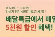 뉴스팍 배상미 기자 | 경기도 공공배달앱 배달특급이 2025년 하반기 경기살리기 ‘통 큰 세일’에 합류한다. 경기도주식회사는 오는 30일 일요일까지 배달특급 전체 회원을 대상으로 배달특급 입점 가맹점에서 사용할 수 있는 5천원 할인 쿠폰을 제공한다고 23일 밝혔다. 해당 프로모션은 배달특급 애플리케이션 내 상반 ‘통 큰 세일’ 배너를 통해 쿠폰을 내려받아 결제 단계에서 사용할 수 있다. 예산 소진 시까지 회원당 매일 1회 내려받아 사용 가능하다. 배달특급은 지난 상반기에도 경기도와 경기도시장상권진흥원이 추진한 ‘2025년 상반기 경기 살리기 통 큰 세일’에 참여한 바 있다. 당시 배달특급은 경기도 지역화폐가 연동되는 공공배달앱 3사(배달특급, 땡겨요, 먹깨비) 가운데 가장 먼저 할인 쿠폰을 소진시켰고, 가장 많은 30억 원의 거래액을 기록하며 소비자와 소상공인의 상생을 이끌어 낸 바 있다. 한편, 배달특급의 모든 이벤트는 해당 상단 배너 기능을 통해 확인 가능하며, 지역에 따라 할인 조건과 금액이 달라질 수 있어 사전 확인이 필요하다.