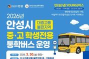 뉴스팍 배상미 기자 | 안성시는 대중교통 이용이 불편한 지역 중·고등학생들의 안전하고 편리한 등·하교 환경 조성을 위해 학생전용 통학버스 ‘안(安)녕(YOUNG)버스’를 오는 3월 30일부터 본격 운행한다고 밝혔다. ‘안(安)녕(YOUNG)버스’는 ‘안성(安)’과 ‘젊음(YOUNG)’, 그리고 ‘밝은 인사(안녕)’의 의미를 담은 명칭으로, 학생들이 아침마다 밝고 안전하게 등교할 수 있도록 지원하는 데 목적이 있다. 이번 사업은 안성시와 경기도안성교육지원청이 공동으로 추진하는 협력사업으로, 관내 대중교통 불편지역 중·고등학생을 대상으로 운영된다. 총 5개 노선에 버스 7대를 투입하여 13개 학교 학생들이 공동으로 이용할 수 있도록 했다. 특히 학교별·요일별 수업 종료시간이 상이한 점을 반영하여 하교 시간대를 다양화하는 등 실질적인 통학 수요를 반영한 맞춤형 운행체계를 구축했다. 이를 통해 학생들의 대기시간을 줄이고 보다 효율적인 통학 환경을 제공할 계획이다. 이용요금은 안성시 시내버스 청소년 요금과 동일하게 적용되며, 환승 할인도 가능하다. 다만 학생 본인 명의의 교통카드를 사용해야 하며, 보호자