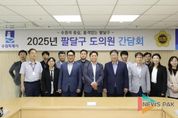 뉴스팍 배상미 기자 | 수원시 팔달구는 오는 9월 30일 구청 상황실에서 도의원 초청 간담회를 개최했다. 이날 간담회에는 경기도의회 김호겸, 김도훈 도의원 2명과 이상균 구청장을 비롯한 간부 공무원이 참석한 가운데 ▲주민 생활과 밀접한 현안 사업 ▲도·시비 예산 확보 방안 등을 논의하고 의견을 교환하는 시간을 가졌다. 지역구 도의원들은 “팔달구에서 추진하는 각종 주요 업무와 사업에 대해 소통할 수 있는 의미 있는 시간이었다. 구민의 생활 편익과 지역발전을 위해 적극 지원하고, 현장의 목소리를 반영할 수 있도록 함께 현안을 해결해 나가겠다.”고 말했다. 간담회를 주관한 이상균 구청장은 “팔달구 발전을 위해 항상 힘써주시는 도의원님들께 감사드리며, 앞으로도 의원님들과의 긴밀한 소통과 협력으로 구민을 위한 다양한 사업이 원활히 잘 진행될 수 있도록 최선을 다 하겠다”고 말했다. 팔달구는 이번 간담회를 계기로 도의회와의 협력 체계를 더욱 공고히 하고 지역 현안 해결 및 주민의 삶의 질 향상을 위한 구민 중심의 행정을 지속적으로 추진해 나갈 계획이다.