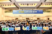 뉴스팍 배상미 기자 | 농협중앙회 경기농협(본부장 엄범식)은 30일(화요일) 여주시 썬밸리호텔에서 새농민회원등이 참석한 가운데“농심천심(農心天心)운동”발대식을 열고 본격적인 운동 확산에 나섰다. 이날 발대식에는 경기농협을 포함하여 유관기관, 농업단체, 범농협 계열사 임직원등 500여명이 참석하여 농업·농촌 가치 제고를 위한 결의를 다졌다. 엄범식 총괄본부장은 “농심천심 운동은 농업인이 존경받고 국민 모두가 행복한 지속 가능한 농업·농촌을 구현하기 위한 캠페인 이라며” 우리의 먹거리를 책임지는 농업의 중요성을 알리는 데 경기농협이 앞장서겠다“고 말했다. 한편, 농심천심은‘농부의 마음이 하늘의 뜻’이라는 의미로 국가 운영의 근간이 되는 농업의 소중함을 알리고, 범국민적인 공감대를 형성하여 지속 가능한 농업·농촌을 구현하는데 그 목적을 두고 있다.