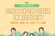 뉴스팍 배상미 기자 | 안성시는 오는 10월 1일부터 11월 7일까지 ‘2025년도 하반기 안성시 대학생 학자금 대출이자’ 지원 신청을 받는다. 지원 대상은 공고일(2025. 10. 1.)기준으로 안성시에 주민등록 주소를 두고 재학(휴학 포함)중인 대학(원) 재학생(휴학생)이다. 지원 대상자로 선정되면 대상자가 한국장학재단에서 대출받은 학자금에 대한 2025년 상반기(1월~6월) 발생 이자를 안성시가 지급하게 된다. 지급은 대출 계좌 원리금에서 차감하는 방식으로 진행되며, 지원 내역은 12월 지급이 확정된 시점에 한국장학재단 인터넷 홈페이지에서 확인할 수 있다. 신청 방법은 주소지 읍·면·동 행정복지센터 또는 안성시청(미래교육과)으로 방문하여 접수하면 된다. 안성시 관계자는 “학자금 대출이자 지원 사업을 통해 대학생들의 학업 부담을 완화하고, 학업에 전념할 수 있는 환경을 조성하는데 도움이 되길 바란다”고 전했다.