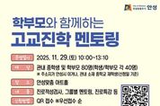 뉴스팍 배상미 기자 | 안성시는 오는 11월 29일 오전 10시, 안성맞춤 아트홀에서 관내 중학생과 학부모를 대상으로 ‘학부모와 함께하는 고교진학 멘토링’을 실시한다고 밝혔다. 이번 멘토링은 ‘진로탐색, 함께 걸어요! 학부모와 자녀가 함께 만드는 고교진학 로드맵’ 이라는 슬로건 아래, 학생들이 자기주도적으로 진로를 설계하고, 학부모가 효과적으로 자녀의 진로를 선택할 수 있도록 돕는 데 중점을 두고 있다. 특히, 가정과 지역사회가 함께하는 진로교육 협력체계를 구축함으로써, 지역 교육공동체 역량 강화와 진로교육 환경 개선을 동시에 도모할 계획이다. 본 프로그램은 안성시 주소지를 두고 있거나 관내 중학교 재학 중인 중학생과 학부모 총 80명을 대상으로 하며, 신청은 10월 1일(수)부터 11월 7일(금)까지 QR코드를 통해 선착순 접수가 가능하다. 행사는 ▲진로 특강 및 검사 해석(80분) ▲커리어맵 실습(30분) ▲그룹별 멘토링(60분) 등이 진행되며, 전문 강사와 멘토가 참여해 실질적이고 체계적인 진로·진학 설계를 돕는다. 그룹 멘토링은 참가 학생 40명을 8명씩 5개 그룹으로 나누어 맞춤형 지도가 이루어질 예