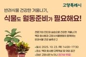 뉴스팍 배상미 기자 | 고양특례시는 반려식물의 건강한 겨울나기를 위한 맞춤 해법을 제공하는 ‘그린케어, 겨울 대비 반려식물 돌보기 행사’를 오는 10월 23일 오후 2시부터 5시 30분까지 백마 화사랑에서 개최한다고 밝혔다. 먼저 백마 화사랑 야외 공간에서는 고양시식물병원 전문가가 상주해 시민이 직접 가져온 반려식물에 대해 1:1 현장 진단을 제공하고, 병해충, 과습 등 식물의 상태에 따라 분갈이, 영양제 처방 및 맞춤형 월동 관리법을 안내한다. 별도 신청 없이 당일 현장 접수로 참여 가능하다. 실내에서는 ‘반려식물 동절기 핵심 관리법’을 주제로 체험형 특강이 진행된다. 겨울철 생육 관리 요령, 휴면기 대비 가지치기 및 분갈이 실습 등 내년 봄의 성장을 위한 전문적인 지식을 습득할 수 있다. 특강은 백마 화사랑 누리집에서 선착순 12명까지 신청할 수 있다. 시 관계자는 "겨울은 식물이 가장 취약해지는 시기인 만큼, 이번 행사를 통해 전문가의 과학적인 진단과 맞춤형 솔루션으로 반려식물과 더욱 건강하고 풍요롭게 겨울을 나시길 바란다”고 전했다. 행사에 대한 자세한 내용과 특강 신청은 백마 화사랑 누리