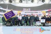 뉴스팍 이화형 기자 | 광주시는 지난 28일 광주시 공설운동장에서 ‘제54회 광주시민의 날’ 행사를 성황리에 개최했다. ‘체육으로 하나되다’를 구호로 열린 이번 행사는 광주시민의 자긍심을 높이고 지역 공동체 의식을 강화하기 위해 마련됐으며 시민 3천여 명이 참여해 다채로운 프로그램을 즐겼다. 행사는 오전 9시 30분 읍·면·동 대표 선수단의 입장으로 시작됐으며 이어진 기념식에서는 지역발전에 기여한 시민들에 대한 표창 수여와 축하 메시지가 전달되며 뜻깊은 시간을 가졌다. 이후 체육대회와 문화 공연 등 다채로운 프로그램이 펼쳐졌다. 시민들은 구슬땀을 흘리며 화합과 경쟁의 즐거움을 나눴고 광주시립광지원농악단의 공연과 홍보대사 마커스 강, 초대가수 나태주의 축하 무대가 이어지며 현장 분위기를 뜨겁게 달궜다. 이날 방세환 시장은 “시민 여러분의 열정적인 참여와 협조 덕분에 올해 시민의 날 행사를 성공적으로 마칠 수 있었다”며 “앞으로도 시민이 주인이 되는, 시민과 함께하는 행사를 지속적으로 만들어 가겠다”고 밝혔다.