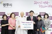 뉴스팍 이화형 기자 | 대한불교 조계종 국청사는 지난 29일 추석을 앞두고 지역 내 어려운 이웃을 돕기 위해 백미 300포(4㎏, 435만 원 상당)를 광주시에 기탁했다. 이날 기탁식에는 주지 서호 스님을 비롯한 국청사 관계자들이 참석했으며 전달된 백미는 광주시를 통해 지역 내 저소득층과 복지 사각지대 가구에 고루 배분될 예정이다. 서호 주지 스님은 “작은 정성이지만 이 쌀이 명절을 맞이한 어려운 이웃들에게 따뜻한 힘이 되길 바란다”며 “앞으로도 지역사회와 함께 나눔을 실천하는 국청사가 되겠다”고 밝혔다. 이에 대해 방세환 시장은 “추석을 맞아 따뜻한 마음을 나눠주신 국청사에 깊이 감사드린다”며 “기탁받은 백미는 꼭 필요한 분들에게 소중히 전달하겠다”고 말했다. 한편, 국청사는 지난 4월에도 백미 400포(4㎏)를 광주시에 기탁하는 등 꾸준한 이웃사랑을 실천하며 지역사회에 귀감이 되고 있다.