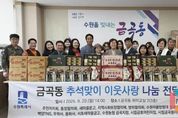 뉴스팍 배상미 기자 | 수원시 권선구 금곡동 행정복지센터는 지난 29일, 추석 명절을 맞이하여 ‘추석 명절 이웃사랑 나눔 전달식’을 개최했다. 이번 전달식에는 △금곡동 주민자치회 △통장협의회 △지역사회보장협의체 △새마을문고 △방위협의회 △수원자율방범대 칠보지대 △무학사 △용화사 △서호새마을금고 △수원농협 금곡지점 △시립금곡동어린이집 △시립금호어린이집 △백양TNS 등 지역 내 다양한 단체 및 유관기관들이 참여해 따뜻한 명절 분위기를 조성했다. 참석자들은 △백미 △라면 △상품권 △선물세트 등 다채로운 명절 선물을 준비했으며, 이 물품들은 추후 취약계층 주민들에게 전달될 예정이다. 장성임 동장은 “어려운 시기에도 이웃사랑을 실천해 주신 모든 단체와 기관에 깊은 감사를 드리며 이웃과 함께 정과 사랑을 나누는 추석 명절이 되기를 바란다”라고 말했다.