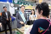 뉴스팍 배상미 기자 | 이재준 수원시장이 추석 명절을 앞두고 29일 권선종합시장에서 장을 보고, 상인들을 응원했다. 구매한 식료품은 사회복지시설에 전달했다. 이재준 시장은 식료품 등을 온누리상품권으로 구매하고, 상인들을 격려했다. 이어 세류지역아동센터를 찾아 시장에서 구매한 식료품을 기부했다. 이날 구매한 식료품은 아녜스의 집에도 전달했다. 수원시는 추석을 맞아 ‘간부 공무원 전통시장 장보기’ 행사를 진행하고 있다. 김현수 제1부시장은 10월 2일 반딧불이연무시장, 현근택 제2부시장은 10월 1일 화서시장에서 장을 볼 예정이다. 각 실국장은 지난 9월 23일부터 자매결연 전통시장에서 장을 보고 있다. 이재준 시장은 “전통시장에서 값싸고 우수한 품질의 농축산물과 제수용품을 구매하고, 즐거운 추석 명절을 보내시길 바란다”고 덧붙였다.