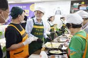 뉴스팍 배상미 기자 | 현장에서 도정 현안을 점검하고 도민들의 목소리를 직접 듣는 민생경제 현장투어에 나선 김동연 경기도지사가 29일 시흥시를 찾아 추석맞이 반찬 나눔 봉사활동을 진행했다. 시흥시 체육관에서 ‘나눔자리문화공동체’와 함께한 김 지사는 봉사자들과 동태전을 부치고, 반찬을 소분해 담는 작업에 참여했다. 이어 30여 년간 지역 취약계층을 위해 꾸준히 활동해 온 나눔자리문화공동체 이상기 회장에게 도지사 표창을 수여했다. ‘나눔자리문화공동체’는 1985년 독거노인 음식 나눔 및 목욕 봉사활동으로 시작해, 현재는 매주 월요일 시흥시 인근 지역 어르신과 취약계층 120여 가구에 반찬을 나누고 있는 민간봉사단체다. 512명의 회원이 참여하며, 향후 1,000원만 내면 누구든지 찾아와 따뜻한 한 끼를 할 수 있는 식당을 차리는 것이 이들의 목표다. 오찬 자리에서는 봉사단체 회원들과 식사를 하며 애로사항과 향후 봉사활동 방향을 나눴다. 이후 김 지사는 봉사자들의 반찬 나눔 배달에 동참해 시흥시의 한 조손가정을 찾아 따뜻한 추석 인사를 건넸다. 한편, 경기도는 매년 전년도 100시간 이상 또는 누적 5