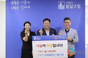 뉴스팍 배상미 기자 | 수원시 팔달구는 지난 26일, 경기교총웨딩하우스에서 기부하는 성금 200만원 전달식을 가졌다. 팔달구 팔달산로 89-13에 위치한 경기교총웨딩하우스는 결혼식과 각종 연회를 진행할 수 있는 예식 전문 시설로, 품격 있는 서비스와 지역 밀착형 운영으로 알려져 있다. 이번 성금은 팔달구의 저소득층을 위한 특화사업과 생필품 구매 등에 사용될 예정이다. 장금식 대표는 “작은 정성이지만 도움이 필요한 이웃들에게 보탬이 되기를 바란다”며, “앞으로도 지역사회와 함께 나눔을 실천할 수 있도록 지속적으로 관심을 기울이겠다”고 전했다. 이상균 팔달구청장은 “지역사회의 어려운 이웃을 위해 귀한 성금을 전달해주신 경기교총웨딩하우스에 깊이 감사드린다”며, “소중한 마음이 저소득 주민들에게 잘 전달될 수 있도록 최선을 다하겠다”고 밝혔다.