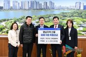 뉴스팍 배상미 기자 | 수원시 권선구 금곡동 행정복지센터는 12일, 시립모아2 어린이집에서 지역 내 어려운 이웃을 돕기 위해 마련한 성금을 전달받았다고 밝혔다. 금곡동 사랑의 하트 온도계 제1호 기부자로, 시립모아2 어린이집은 매년 어려운 이웃을 돕기 위한 바자회를 열어 지역사회 나눔 실천에 앞장서고 있다. 이번 기부금 역시 아이들이 평소 저금통에 모은 용돈과 학부모, 교직원이 함께 참여한 바자회 수익금으로 마련해 그 의미를 더했다. 한미연 원장은 “아이들이 작은 손으로 직접 모은 돈으로 어려운 이웃에게 도움이 된다는 사실에 뿌듯해했다며 이번 활동을 통해 아이들이 배려와 나눔의 가치를 자연스럽게 배울 수 있는 계기가 됐으면 좋겠다”라고 전했다. 장성임 동장은 “따뜻한 나눔을 실천해 준 시립모아2 어린이집에 감사드린다”라며 “아이들과 학부모들의 따뜻한 마음이 담긴 성금을 어려운 이웃들에게 잘 전달하고, 복지 사각지대가 없도록 세심히 살피겠다”라고 말했다.