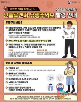 안양시, 인플루엔자 유행주의보 발령에 "예방접종 서둘러주세요"