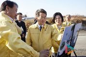 뉴스팍 배상미 기자 | 28일 안성에서 19번째 민생경제 현장투어에 나선 김동연 경기도지사가 경기도 최남단 안성의 거점소독시설을 찾아 초동 방역 상황을 긴급 점검했다. 이번 점검은 지난 25일 충남 당진에서 발생한 아프리카돼지열병에 대한 선제적 방역 조치의 하나로 마련됐다. 김 지사는 현장에서 터널식 소독조에서 진행되는 가축 방역 과정을 지켜본 후 관계자들을 격려하고 겨울철 동물방역에 최선을 다해줄 것을 당부했다. 김 지사는 “조류인플루엔자와 아프리카돼지열병이 계속 전파 중이어서 걱정이다. 경기도는 빠른 대응, 강력한 방역, 신속한 지원의 3대 원칙으로 동물방역에 대처하겠다”며 “축산농가 보호와 축산업 발전을 위해 최선을 다하겠다. 축산농가 종사자 여러분들도 방역과 예방에 협조를 부탁드린다”고 강조했다. 돼지 33만 두를 사육하는 안성(도내 2위, 전국 4위)은 평택·화성과 근접한 돼지 사육 중심지다. 경기도는 방역대 설정, 이동 제한 등 광범위한 방역 조치를 시행하고 있다. 현장에서 김보라 안성시장, 윤종군 국회의원과 즉석 스탠딩 간담회 가져 소독시설 점검을 마친 김동연