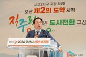 뉴스팍 이소율 기자 | 오산시가 7일, 세교3신도시 지구지정을 계기로 한 향후 시정 운영 방향과 인구 50만 경제자족도시로 도약하기 위한 중장기 도시 비전을 제시했다. 이권재 오산시장은 이번 발표에서 세교3신도시를 주거 공급에 그치지 않고, 도시 기능과 성장 방향을 함께 고려해 추진하겠다는 구상을 밝혔다. 세교3신도시는 총 131만 평 규모로 3만3천 호의 주택 공급이 예정돼 있으며, 인구 50만 시대를 대비해 단계적으로 조성될 계획이다. 현재 세교3신도시에 반영된 경제자족용지는 9만3천 평 규모로, 오산시는 관계기관과의 협의를 통해 경제자족용지 확대를 추진할 방침이다. 아울러 첨단 테크노밸리와 게임 콘텐츠 산업 클러스터 조성을 통해 AI·반도체·게임 산업이 결합된 경기 남부권 산업 거점 도시로의 성장을 도모한다는 계획이다. 이 시장은 이와 관련해 “세교3신도시는 주거를 늘리는 사업이 아니라, 오산의 미래를 설계하는 사업”이라며 “기업이 오고, 일자리가 생기고, 시민의 삶으로 이어지는 구조를 만드는 것이 목표”라고 말했다. 교통 인프라 구축도 세교3신도시 추진의 주요 과제로 제시됐다. 오산시는 개