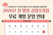 뉴스팍 배상미 기자 | 안성시시설관리공단은 2026년 설 명절을 맞아 2월 14일부터 18일까지 5일간, 공단이 관리하는 공영주차장 중 전통시장 인근에 위치한 석정동 공영주차장과 동본동 공영주차장을 한시적으로 무료 개방한다고 밝혔다. 이번 무료 개방은 설 명절 기간 동안 전통시장 방문객 증가가 예상됨에 따라 주차공간 부족으로 인한 불편을 해소하고 보다 많은 시민이 전통시장과 인근 상권을 편리하게 이용할 수 있도록 지원하기 위해 추진됐다. 무료 개방되는 공영주차장 2개소를 제외한 나머지 주차장은 기존과 동일하게정상 유료 운영하며 이를 통해 주차 수요를 분산하고 교통 혼잡을 최소화하는 등 효율적인 주차장 운영을 도모할 계획이다. 또한, 안전사고 예방을 위해 차단기는 개방하지 않고 현장 안내 및 순찰을 강화하여 안전하고 질서 있는 주차 환경을 유지할 방침이라고 밝혔다. 이정찬 이사장은 “설 명절을 맞아 전통시장을 찾는 사람들이 주차 걱정 없이장을 보실 수 있도록 무료 개방을 결정했다.”며 “앞으로도 공영주차장의 공공성을 강화하고 지역경제 활성화에 기여할 수 있는 운영방안을 지속적으로 마련하겠다.”고 말