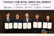 뉴스팍 배상미 기자 | 용인특례시는 24일 시청 접견실에서 용인교육지원청을 비롯해 3개 학교와 ‘지구를 생각하는 생태학교 육성사업’을 위한 협약을 맺었다. 이날 협약식에는 조영민 교육장과 올해 생태학교로 선정된 대지고 유동철 교장, 효자초 정계환 교장, 도현초 연승희 교장, 담당 교사들이 참석했다. 이들 기관은 협약에 따라 ▲학교별 맞춤형 생태교육 운영 지원 ▲교과·교육과정과 연계한 생태교육 프로그램 개발·자문 ▲생태학교 육성사업 성과평가 등을 위해 협력하기로 했다. 올해 4년 차를 맞이한 ‘지구를 생각하는 생태학교’ 사업은 전국 지자체 중 최초로 환경교육 전문 인력을 학교 현장에 배치, 이론 교육을 넘어 실천 중심의 생태전환교육을 하는 용인시의 핵심 환경교육 사업이다. 시는 2023년부터 해마다 공모를 통해 지역 내 학교를 선정해 왔다. 올해 선정된 3개 학교를 포함해 총 12개교가 생태학교 사업에 참여하고 있다. 올해 기준 용인 지역은 초·중·고 343학급, 학생 9149명이 생태교육에 참여하면서 현장 중심의 체계적인 환경교육으로 높은 평가를 받고 있다. 시는 축적된