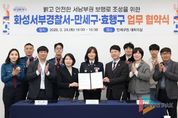 뉴스팍 류은정 기자 | 화성특례시 만세구는 24일 만세구청 대회의실에서 화성서부경찰서, 효행구청과 함께 ‘밝고 안전한 서남부권 보행로 조성을 위한 업무협약(MOU)’을 체결했다고 밝혔다. 이번 협약은 어두운 보행로와 범죄 취약지역에 선제적으로 대응해 시민 불안을 줄이고 안전한 보행환경을 조성하기 위해 마련됐다. 협약에 따라 각 기관은 ▲보행로 조도 개선을 통한 범죄 사각지대 해소 ▲범죄예방 환경 조성을 위한 협력체계 구축 ▲야간 취약지역 합동 점검 및 개선사업 추진 등에 상호 협력할 계획이다. 특히 화성서부경찰서와 만세구청, 효행구청은 관내 범죄 취약지역에 대한 실태조사를 실시하고, 조도 개선이 필요한 구간을 발굴해 맞춤형 사업을 추진할 계획이다. 이를 통해 어두운 보행환경을 개선하고 시민이 안심하고 통행할 수 있는 안전한 도시 환경 조성에 기여할 것으로 기대된다. 홍노미 만세구청장은 “이번 협약을 통해 지역 내 보행환경을 보다 안전하게 개선하고, 시민이 체감할 수 있는 안전 정책을 지속적으로 추진하겠다”고 밝혔다. 최현아 화성서부경찰서장은 “지자체와의 협력을 통해 범죄
