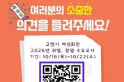 뉴스팍 배상미 기자 | 고양특례시 여성회관은 시민의 직무 역량 강화와 성공적인 취·창업 연계를 지원하기 위해 ‘2026년 취·창업 특강 수요조사’를 실시한다. 이번 조사는 고양시민을 대상으로 22일 오후 5시까지 진행되며, 온라인 설문을 통해 참여할 수 있다. 설문은 QR코드를 통해 접속 가능하며, 취업과 창업 분야에 대한 실질적인 수요를 파악하는 데 중점을 둔다. 조사 항목에는 성별, 연령대, 거주 지역 등 기본 정보뿐 아니라, 기존 특강 참여 경험, 향후 참여 목표, 희망 강좌 주제 등이 포함된다. 특히 창업 희망자를 위한 특강 참여 의향과 구체적인 주제 제안도 함께 수렴할 예정이다. 고양시 여성회관은 이번 수요조사 결과를 바탕으로 2026년 특강 교육과정을 기획하고, 실습 및 자격 연계 중심의 프로그램을 통해 시민의 직무 역량을 강화할 계획이다. 또한 채용 정보 제공, 진로 상담, 이력서·면접 컨설팅 등 실질적인 취업 지원과 더불어, 지속적인 교류를 위한 커뮤니티 활동도 함께 운영할 예정이다. 여성회관 관계자는 “시민의 목소리를 반영한 맞춤형 교육 프로그램을 통해 교육 만족도를