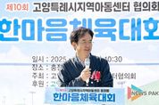 뉴스팍 배상미 기자 | 이동환 고양시장이 15일 덕양구 충장근린공원 인조잔디구장에서 열린 ‘2025년 지역아동센터 제10회 한마음체육대회’에 참석했다. 이 시장은 지역아동센터 모범 아동들에게 표창장을 수여하고, 축사를 통해 “오늘 하루 승패를 떠나 함께 뛰고, 함께 웃고, 함께 응원하는 마음으로 즐거운 추억을 만들기를 바란다”라고 전했다.