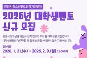 뉴스팍 배상미 기자 | 광명시청소년재단 청소년진로진학지원센터는 관내 중·고등학교 청소년 대상 학과 멘토링 운영을 위해 ‘2026년 대학생 멘토단(wave)’을 모집한다고 밝혔다. 대학생 멘토단(wave)은 대학생 멘토가 전공 및 진로 경험을 바탕으로 청소년에게 학과 정보, 전공 이해, 진학 준비 방향 등을 제공하는 프로그램으로, 학교 현장과 연계한 멘토링 활동을 통해 청소년의 진로·진학 역량 강화를 지원한다. 모집 대상은 4년제 대학교 재학생·휴학생 또는 대학원 재학생·휴학생(2026학년도 입학 예정자 포함)으로, 1년 이상 활동 가능한 대학생이면 지원할 수 있다. 선발된 멘토에게는 역량강화 교육이 제공되며, 멘토링 활동 참여 시 소정의 활동비 지급 또는 봉사시간 인정 등 참여 혜택이 지원된다. 신청은 2026년 2월 9일 12:00까지 구글폼을 통해 가능하며, 자세한 사항은 광명시청소년진로진학지원센터 홈페이지 내 모집 공고문을 통해 확인할 수 있다. 광명시청소년진로진학지원센터 박사라 센터장은 “이번 멘토단 운영을 통해 청소년에게는 실질적인 진학 정보와 멘토링 기회를 제공하고, 대학생에게는 지역사