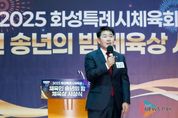 뉴스팍 류은정 기자 | 화성특례시의회는 18일, YBM 연수원(화성시 정남면 세자로 317)에서 열린 '2025 화성특례시체육회 체육인 송년의 밤 체육상 시상식'에 참석해 한 해 동안 화성 체육 발전을 위해 헌신한 체육인들의 노고를 격려하고 축하했다. 이날 행사에는 배정수 의장을 비롯해 김상균·배현경·유재호·오문섭·이용운·이해남·위영란 의원이 참석했고, 화성시체육회 체육 가족 등 160여 명이 참석해 뜻깊은 자리를 함께했다. 배정수 의장은 “올해 체육 가족 여러분의 열정과 헌신으로 화성의 운동장과 경기장은 땀과 웃음이 공존하는 행복한 공간이 됐다”며 “한 경기, 한 순간 마다 보여주신 포기하지 않는 정신과 정직한 땀방울이 오늘의 화성을 움직이는 진짜 힘”이라고 강조했다. 행사는 식전행사를 시작으로 2025년도 주요사업 실적 보고, 금년 활동 동영상 시청, 체육 유공자 표창, 단체 기념촬영 순으로 진행됐으며, 이후 만찬을 통해 체육 가족 간 화합과 교류의 시간을 가졌다. 특히 이날 체육상 시상식에서는 2025년 한 해 동안 화성특례시 체육 발전에 기여한 유공자 18명에게 표창이 수여됐다.