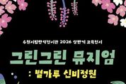 뉴스팍 배상미 기자 | 경기도 수원시립미술관은 자연과의 관계를 성찰하고 생태적 가치를 체험하는 참여형 교육전시 《그린그린 뮤지엄 : 별가루 신비정원》을 3월 24일부터 7월 24일까지 수원시립만석전시관에서 개최한다. 《그린그린 뮤지엄》은‘자연과의 눈맞춤’을 주제로 자연의 초록(Green) 빛을 예술로 그려낸다(Drawing)는 중의적 의미를 담아 연간으로 운영된다. 2026년 상ㆍ하반기 두 차례에 걸쳐 운영되며, 상반기 1부 전시는《그린그린 뮤지엄: 별가루 신비정원》에 이어 하반기에는 새로운 주제의 2부 전시가 이어질 예정이다. 이번 전시는 회화 작가 진영(b.1982)과 설치, 사운드 등 융복합 작업을 선보이는 팀 아르테코(est.2023, 설혜린, 이소희, 김창수, 드림스케이프)가 참여한다. 전시는 총 20점의 작품으로 구성되며, 두 개의 섹션을 통해 자연을 감각하고 사유하는 경험을 제공한다. 첫 번째 섹션 '어두운 밤, 숲의 이야기'는 앵무새를 매개로 숲의 서사를 그려내는 작가 진영의 작품을 소개한다. 클로드 모네의 '수련이 있는 연'을 오마주한 작업 '사이 02'(2024)는 도시 속 유일한 쉼의 공간