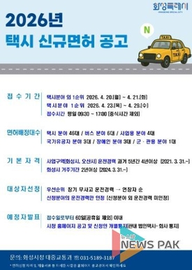 화성특례시, “개인택시 신규 면허 63대 공급” 교통 불편 해소 박차
