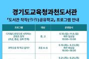 뉴스팍 배상미 기자 | 경기도교육청과천도서관이 학생들의 자기주도 학습 역량과 창의적 사고력 함양을 위해 ‘도서관 작작(作作) 공유학교’를 운영한다. 오는 5월부터 10월까지 운영되는 ‘도서관 작작(作作) 공유학교’는 독서 기반의 체험과 창작 활동을 결합한 과천도서관의 특화 공유학교 프로그램이다. 프로그램은 초등학생(4~6학년)과 청소년을 대상으로 운영되며 디지털 콘텐츠 창작, 과학·진로 탐색, 인공지능 활용, 경제·창업 체험 등 다양한 분야의 융합형 교육과정으로 구성했다. 청소년 대상 과정인 디지털 드로잉을 활용한 콘텐츠 창작 프로그램은 초급·중급·심화 단계로 운영해 아이디어를 시각적으로 표현하고 스토리텔링 역량을 확장할 수 있도록 했다. 초등학생 대상 프로그램으로는 과학 탐구와 독서를 연계한 진로 탐색 활동, 인공지능을 활용한 동화책 제작, 경제 개념을 체험 중심으로 익히는 프로그램, 아이디어를 실제 결과물로 구현해보는 창업 활동, 이모티콘 제작을 통한 콘텐츠 창작 활동 등 다양한 체험 중심 과정이 운영된다. 각 프로그램은 소규모 참여형 수업으로 운영되며 학생의 수준과 흥미를 고려한