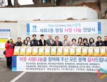 뉴스팍 배상미 기자 | 수원특례시의회 이재식 의장과 김은경 의원(더불어민주당, 세류1·2·3·권선1)은 설 명절을 맞아 2월 11일, 세류2동 행정복지센터 주차장에서 열린 ‘세류2동 설 명절 사랑나눔 전달식’에 참석해 이웃 사랑 나눔에 함께했다. 이날 전달식에는 수원특례시의회 관계자를 비롯해 세류2동장과 단체장, 동 관계자들이 참석했으며, 관내 취약계층이 따뜻한 명절을 보낼 수 있도록 마련된 명절 위문 물품 전달 행사가 진행됐다. 이번 사랑나눔 전달식은 지역사회 후원과 자발적인 참여로 마련된 것으로, 관내 수급자 및 차상위계층 등 취약계층 가구에 설 명절 위문 물품이 전달될 예정이다. 수원특례시의회 관계자는 “명절을 앞두고 지역사회와 함께 이웃을 살피는 자리에 함께하게 되어 뜻깊다”며 “의회도 앞으로 지역 공동체의 연대와 나눔 문화 확산을 위해 지속적으로 관심과 노력을 이어가겠다”고 밝혔다. 한편, 세류2동은 명절 사랑나눔 전달식을 비롯해 복지 사각지대 해소를 위한 다양한 나눔 활동을 지속적으로 추진하며, 따뜻한 지역공동체 조성에 힘쓰고 있다.