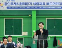 뉴스팍 배상미 기자 | 이상일 용인특례시장은 21일 이틀간 수지·동백 배드민턴전용구장에서 열리는 ‘2026년 제9회 용인특례시 협회장기 생활체육 배드민턴대회’에 참석해 대회 참가자들을 격려했다. 이날 수지배드민턴전용구장에서 열린 개회식에는 이상일 시장을 비롯해 체육회·협회 관계자와 지역 배드민턴 동호인 500여 명이 참석했다. 이상일 시장은 “제9회 용인특례시 협회장기 생활체육 배드민턴대회 개최를 축하한다”며 “배드민턴은 용인에서도 많은 시민의 사랑을 받으며 지역사회에 활력을 불어넣고 있다”고 말했다. 이 시장은 “배드민턴 전용구장에 대한 동호인들의 바람을 시가 잘 알고 있고, 시도 그와 관련한 일을 진행하고 있다”며 “시민들이 보다 편안하게 생활체육을 즐길 수 있도록 시가 체육시설 확충과 환경 개선에 지속적으로 힘쓰고 있다”고 했다. 시는 생활체육 인프라 확충을 위해 은화삼지구 체육관 조성사업을 추진 중이며, 해당 시설은 탁구장 26면, 배드민턴장 8면, 주차장 56면 규모로 조성될 예정이다. 탁구장은 배드민턴을 칠 수 있을 정도의 높이로 지어지며, 배드민턴 대회 때는 탁구장도 8면