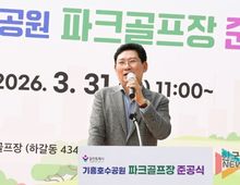 뉴스팍 배상미 기자 | 용인특례시는 31일 기흥호수 수변산책로에 14홀 규모의 파크골프장 준공식을 개최했다. 기흥구 하갈동 434-4번지 일원 하갈2교 하부 약 1만 4000㎡로 조성한 파크골프장은 잔디가 활착하는 5월 중 정식 개장할 예정이다. 시는 향후 공간 확보를 통해 4홀을 늘려 18홀로 조성할 예정이다. 기흥호수 파크골프장은 지역주민의 여가와 쉴 공간을 제공하고, 파크골프 활동으로 세대간 소통과 건강 증진에도 큰 역할을 할 수 있을 것으로 기대된다. 준공식에는 이상일 용인특례시장을 비롯해 지역 주민과 파크골프 동호인들이 참석했으며, 행사장에 마련된 좌석이 부족할 정도로 높은 많은 관심을 받았다. 이 자리에서 지역의 파크골프 동호인들은 파크골프장 마련에 적극적으로 노력한 이상일 시장에게 감사의 뜻을 전했다. 이상일 시장은 기념사를 통해 “파크골프를 사랑하는 지역주민과 동호인들이 간절하게 염원한 기흥호수 파크골프장 공사가 끝났고 5월부터 개장할 예정이다. 오랜 시간 기다려 주셔서 감사하다”며 “14홀 규모는 전국 최초이며, 시는 향후 추가 공간을 확보해 18홀까지 규모를 확대하기 위해 열심히