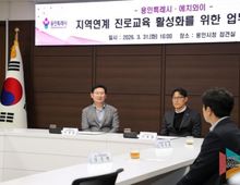 뉴스팍 배상미 기자 | 용인특례시는 31일 시청 접견실에서 hy(구 한국야쿠르트)와 ‘지역연계 진로교육 활성화를 위한 업무협약’을 체결했다고 밝혔다. 이날 협약식에는 이상일 시장, 이재환 hy 중앙연구소장과 관계자들이 참석했다. 양 기관은 청소년 진로교육 활성화를 위한 인적·물적 자원 연계와 상호 협력에 뜻을 모았다. 이번 협약에 따라 시는 사업 운영에 필요한 행정적 지원과 사업의 원활한 추진을 위한 기반을 마련하고, 기업은 지역 내 중·고등학생을 대상으로 식품산업 분야 진로 교육 프로그램 운영, 직무 현장 체험 기회 제공, 연구원 멘토링 활동 등을 추진 한다. 학생들은 생산 공정 견학, 위생·품질관리 체험, 연구원 멘토링 등 다양한 현장 중심 교육에 참여하게 된다. 프로그램은 4월부터 11월까지 운영되며, 지역 중·고등학생 총 60명을 대상으로 진행된다. 상반기에는 중학생을 대상으로 공장 견학 중심 교육이, 하반기에는 고등학생을 대상으로 연구소 기반 심화 프로그램이 마련될 예정이다. 이상일 시장은 “이번 협약을 통해 중·고등학생 60여 명이 hy 중앙연구소를 방문해 식품