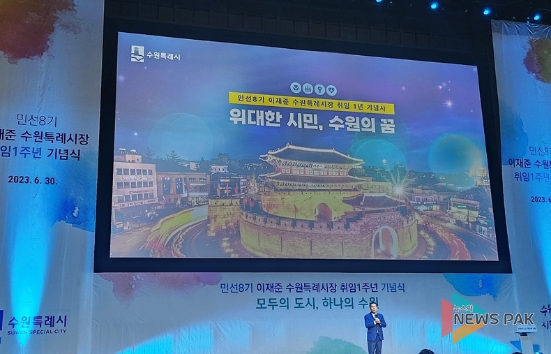 뉴스팍 배상미 기자 | 이재준 수원특례시장이 지난 30일 민선 8기 취임 1주년을 맞아 수원컨벤션센터에서 기념식을 개최했다.