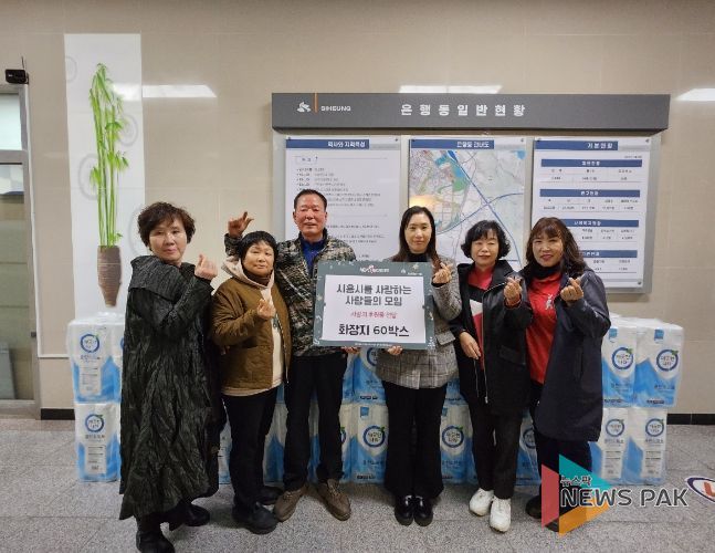 뉴스팍 류은정 기자 | 은행동 행정복지센터에 지난 8일 ‘시흥시를 사랑하는 사람들의 모임’이 방문해 취약계층을 위한 휴지 60상자를 후원했다.