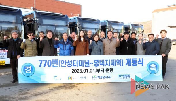뉴스팍 이소율 기자 | 안성시는 2024년 12월 26일 오후 4시에 백성운수 차고지에서 김보라 시장을 비롯하여 안성시의회 의장, 시의원, 교통정책과장 및 운수회사 관계자 등이 참석하여 770번 버스 운행을 위한 개통식을 가졌다.