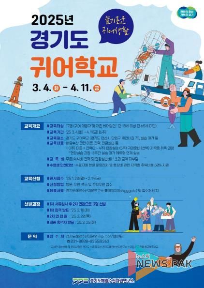 뉴스팍 배상미 기자 | 귀어준비를 위한 가장 효과적이고도 체계적인 교육을 제공하는 경기도해양수산자원연구소가 오는 2월 14일까지 ‘2025년 1기 귀어학교’ 교육생 17명을 모집한다.