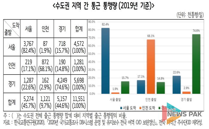 뉴스팍 배상미 기자 | 경기도의 인구가 급증하고 주거지와 직장이 분리되면서 광역 통근통행이 늘어나고 있다. 이로 인해 생활권을 넘어서는 광역 통행 정책의 필요성이 커지고 있다. 경기도의 출퇴근을 원활하게 하기 위해서는 주요 광역 교통축과 광역 교통수단의 확충이 중요하며, 광역 교통시설과 교통수단의 효율적인 연계 교통 시스템 구축이 필수적이라는 의견이 나왔다.